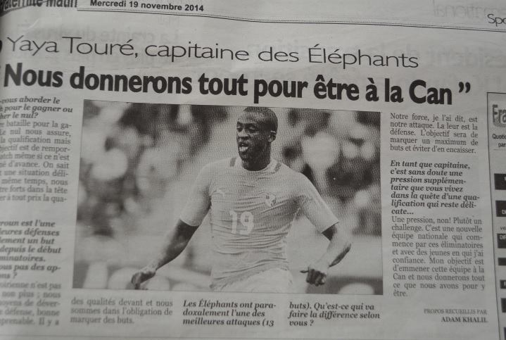 La fièvre monte à Abidjan. A quelques heures du début de la rencontre entre la Côte d’Ivoire le Cameroun, chacun y va de son pronostic. Chacun a sa petite idée et le capitaine des éléphants n’est pas en reste. Dans Fraternité Matin, Yaya Touré insiste : « nous donnerons tout pour être à la CAN »
