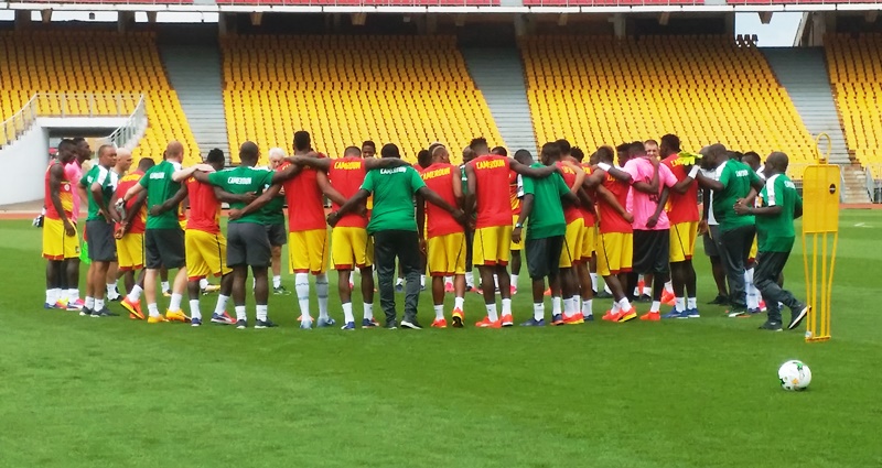 La presse n’a eu droit qu’à 15 minutes, visiblement insuffisantes, pour capturer le maximum d’images possibles des Lions Indomptables qui ont officiellement débuté le stage préparatoire à la dernière journée des éliminatoires du Mondial 2018 ce mardi à Yaoundé. Tous les 23 convoqués étaient présents à cette première séance d’entrainement qui s’est déroulée dans une ambiance bon enfant.