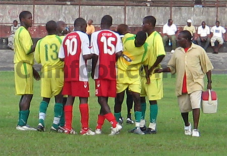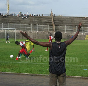 15h 05, nous sommes à 25 minutes du match. Le téléphone de Ngo Loulouga grésille sans relâche alors qu’elle remplit la feuille du match dans les vestiaires. Claire, l’une de ses filles, flanquée de ses amies, sollicite l’intervention de maman pour franchir la barrière du stade. « Bipe moi dès que tu seras à l’entrée principale du stade » rétorque la mère qui est déjà sous pression. C’est sans doute ce qui explique son petit éclat de voix avec Marcel Feuzeu, le coach des gardiens des Astres de Douala. Après les formalités administratives, celle qui est diplômée de l’arbitrage depuis 2001 s’échauffe en compagnie des certains de ses collègues. En D1 du championnat du Cameroun où elle officie depuis 2006, elle a toujours été 4ème arbitre. Le seul grand match qu’elle a dirigé jusque là remonte au 17 mars dernier où elle a officié la rencontre du football féminin Guinée – Afrique du Sud comptant pour les éliminatoires des Jeux Olympiques Pékin 2008. Fort de cette expérience, Ngo Loulouga avait donc la lourde charge de diriger ce derby qui était le premier match officiel entre Astres et Cetef.