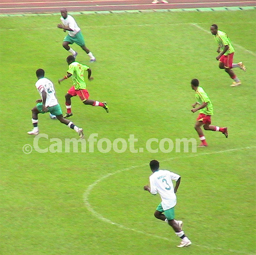 Les visiteurs, grâce à leur capitaine, Nguemaleu, ont ouvert le score à la 31ème minute. Le capitaine des Nassara, pris en tenaille dans la surface de réparation des locaux, réussit néanmoins à prendre le dessus sur les défenseurs. Il assène un coup de tête au ballon qui termine sa course dans les filets du gardien Njoya aligné en lieu et place de Bandeken. La beauté du geste, la détente de félin du buteur rappelle les exploits de François Oman Biyick, ancien lion indomptable. Le but intervient à la suite d’un coup franc apparemment sans danger exécuté par Tchouadeu, qui sera d’ailleurs félicité par son entraîneur Gérard Mbimi et ses camardes restés sur le banc de touche.