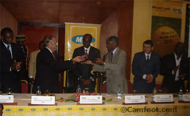 La nouvelle convention entre la Fédération Camerounaise de Football et la société de téléphonie mobile Mtn Cameroon a été signée hier au Yaoundé Hilton Hôtel en présence du ministre des sports et de l’Éducation Michel Zoah, de l’ambassadeur Itinérant Roger Milla, des plus hauts responsables de Mtn et du président de la Fecafoot Iya Mohammed. 1 milliard 400 millions de frs CFA c’est le montant de cette nouvelle convention pour les deux prochaines années. Les clubs de Mtn Elite One et Mtn Elite Two principaux bénéficiaires recevront 60 %, 30% serviront à la construction des infrastructures et 10 % permettront à la Fecafoot de mieux organiser les compétitions.