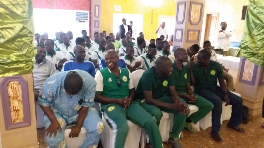 A la suite du Gouverneur, le President Exécutif de Coton Sport M. Sadou Fernand a officiellement installé le coach Ndoumbe Bosso, il lui a ensuite présenté ses collaborateurs et le joueurs.