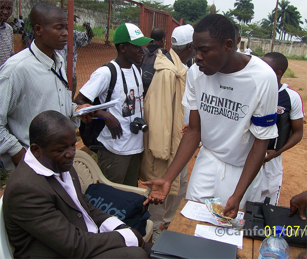 Le match de 16eme de finale de la coupe du Cameroun qui a opposé samedi au stade militaire de Yaoundé Infinitif FC d’Ebolowa à Mount Cameroon de Buea a démarré avec plus de 30 minutes de retard dû au fait que les joueurs venus de la région du Sud n’avaient pas de licence. En pareille circonstance, les textes de la fédération Camerounaise de football en la matière stipulent que ceux des joueurs qui n’ont pas de licence présentent la carte nationale d’identité assortie d’une caution. Malheureusement pour les joueurs d’Infinitif FC le nerf de la guerre va faire défaut. Une quête sera organisée séance tenante entre les joueurs pour permettre à l’équipe de prendre part à ce match. Bien quelle sera incomplète, le commissaire du match Endeng Zogo va autoriser que la partie commence en attendant que Jules Akama le président du club qu’on disait être en route arrive pour compléter la cagnote.