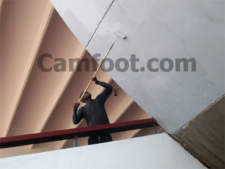 « L’accès à la tribune présidentielle est strictement interdit. Pour tout besoin, requérir l’autorisation de M. le directeur ». La note d’information, affichée à l’entrée de l’aile vitrée du stade omnisports Ahmadou Ahidjo de Yaoundé semble respectée à la lettre. Car, à l’intérieur, seuls des manœuvres minutieusement choisis par le Directeur Bernard Obama, s’activent, qui autour d’un sceau de peinture, qui devant un compteur ou une ampoule électrique, à moins de procéder au changement de moquette… Les travaux en cours ne se limitent pas au niveau de la seule tribune présidentielle. De fond en comble, l’édifice vieux de 35 ans subit sa plus grande toilette depuis une dizaine de jours.