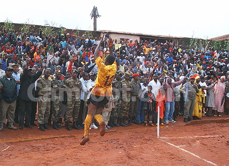 Dschang, 23 juin 2005. Sur ses propres installations, Aigle royal de la Menoua ne se laisse pas dominer. Le nouveau promu vient de s’imposer, 2 buts à 1, devant le champion en titre, Cotonsport de Garoua. Au terme d’un duel au sommet et sensationnel, précédé par une forte pluie qui n’a cependant pas empêché « le tout Dschang » de faire le déplacement du stade du Cenajes de la cité universitaire…