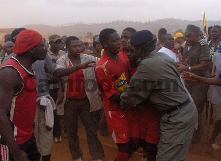 La partie dégénère. Housseni qui conteste le penalty donne un coup de tête à l’arbitre central. La sanction est fatale. Un carton rouge. C’est donc à 9 contre 11 que Mount Cameroon achève la partie. Au coup de sifflet final, les joueurs de Mount Cameroon se déchaînent et occasionnent une bagarre générale au stade. Obligeant ainsi la police à former une barrière de sécurité pour faire sortir les officiels.