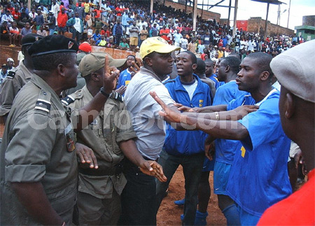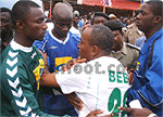 Le capitaine Itiga et ses coéquipiers auront juste l’instant de fêter ce but que des voix de contestations se lèvent du côté de leurs adversaires. Ceux-ci estiment que la balle de la transversale était sortie du stade dans sa trajectoire. Sur le champ, certains joueurs d’Impôts se dirigent vers l’arbitre central, Dongo Ehoungue, et se font entendre. D’autres se dirigent vers le deuxième assistant de la partie, Pierre Enyegue, qu’ils menacent de molester. Ce deuxième groupe, plus furieux, est rejoint par l’entraîneur Alexandre Belinga, qui a traversé tout le stade pour se retrouver sur le côté opposé.