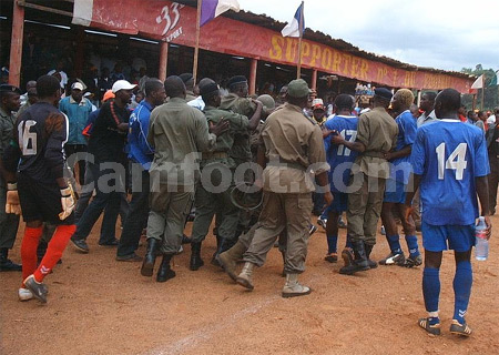 Entre temps, l’assistant numéro 2 s’est éclipsé de la mêlée. Pris de peur et de panique, il engage une course vers le banc des officiels. Chemin faisant, il tente tant bien que mal de dribbler des coups de poing de quelques fiscalistes. Alexandre Belinga, grâce à l’intervention de son président Ahmadou Bagoudou et de ses joueurs, revient à de meilleurs sentiments. Il se calme, non sans venir au banc des officiels gronder, de nouveau. Quelques minutes sont passées, l’arbitre central siffle alors la fin de la partie.
