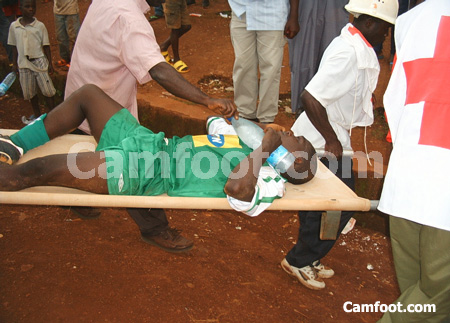 Le joueur Awana d’Espérance de Guider est sorti de l’aire de jeu, sur une civière. Quelques minutes après le coup de sifflet final, il ne s’était toujours pas remis.
