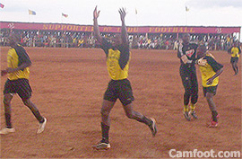 Le match a été âprement disputé. Et, seuls les exploits individuels ont fait la différence dans la rencontre. A la 27ème minute, l’ouverture du score porte la griffe de l’Aigle royal de la Menoua. Des 40 m environ, le milieu de terrain offensif Mbah est au départ d’une puissante frappe, que le gardien Pemi Soulemanou de Renaissance repousse des poings. Témeze, qui a suivi, ne se fait pas prier: il pousse le cuir dedans et fait chavirer les masses venues de la cité universitaire de Dschang. Aigle 1, Renaissance 0.