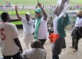Emporté dans son élan et face aux nombreux fans de son club qui sonnaient le chant de ralliement, le président Franck Happy de l’ Union de Douala, se laissera aller à une danse des partisans.