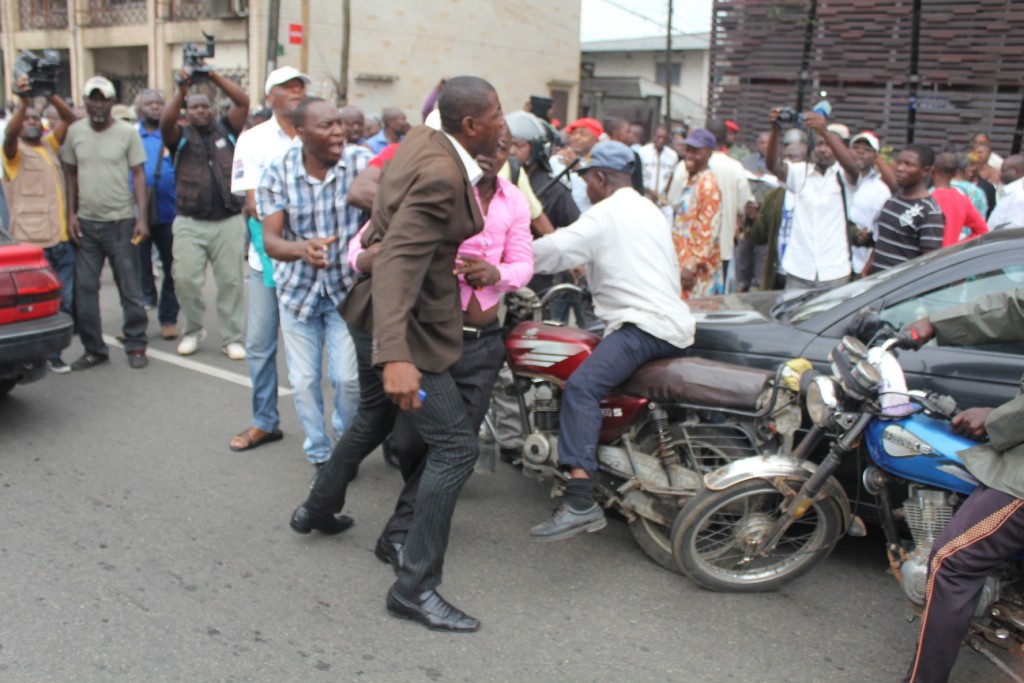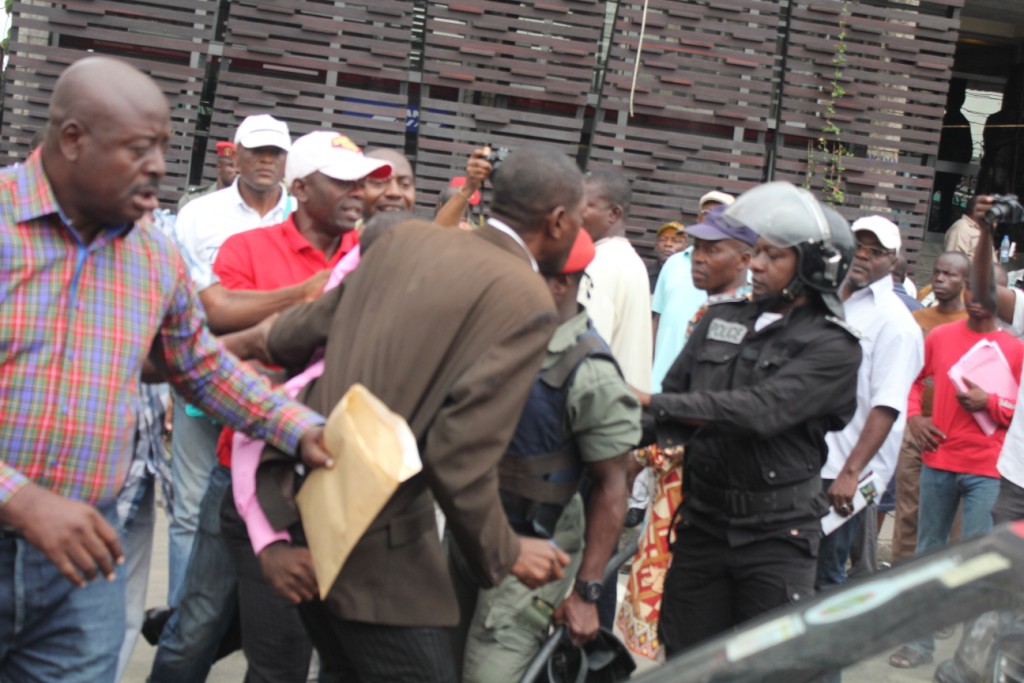 Les éléments des forces de maintien de l’ordre, munis de leurs camions anti-émeutes ont été déployés pour contenir les différents délégués et une foule de curieux. Une bonne frange manifestait son soutien au « candidat » Loga. C’est après plus de deux heures d’horloge, que la sécurité est parvenue à installer les délégués dans la salle des travaux. Pas avant que plusieurs mandataires des clubs aient été violenté.
