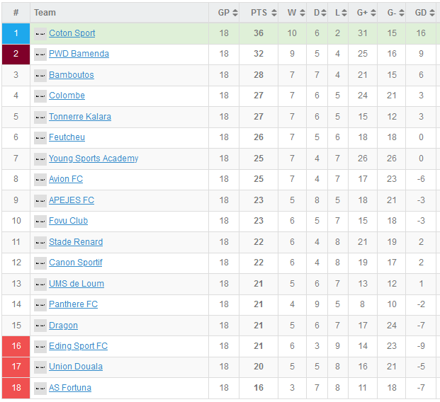 Au classement, Coton Sport reste leader malgré son match nul. Bamboutos et Colombe complètent le podium.