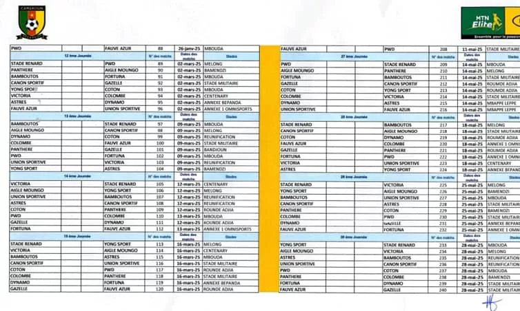 Sauf qu’au niveau du calendrier, il y avait des couacs. Car deux rencontres se répétaient à la phase aller (1ere et 12e journée). Au-delà de Stade Renard – Aigle, on avait aussi Union – Astres qui revenait à la 12e journée. Mais, la Fédération camerounaise de football n’avait pas encore publié ce calendrier sur son site.