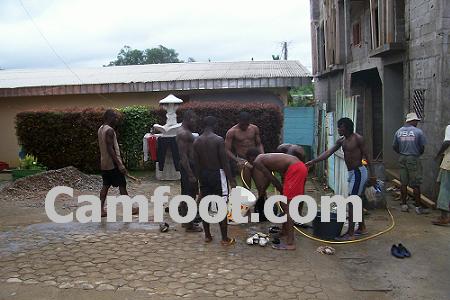 « A Maroua l’année dernière, nous avons raté la qualification avec sept points à cause d’une petite négligence. Cette année nous n’avons plus droit à l’erreur. Après notre première victoire, nous devons rester concentrés pour cet objectif « . Ainsi s’exprimait dans un français teinté d’anglais, Dominique Ayissi, le directeur sportif de des Samba Boys de Tiko. L’équipe a débarqué dans la capitale de la province du Sud quelques jours avant le lancement de ce tournoi avec une délégation de 26 personnes donc vingt et un joueurs, deux entraîneurs, un kiné, le directeur sportif et le secrétaire général. « Juste ce qu’il faut pour accéder en première division. Nous n’avons pas besoin de déplacer toute la ville de Tiko comme les autres l’ont fait ». Alain Wabo, le truculent entraîneur voulait ainsi justifier leur choix.Une séance d’entraînement de Tiko L’équipe a pris ses quartiers à l’Hôtel les Destinés au quartier Mekalat. Son site d’entraînement n’est autre que le terrain du Centre Régional d’Agriculture (CRA) en face de la septième région militaire. C’est l’aire de jeu du terrain de cette école d’Agriculture que Alain Wabo et ses joueurs peaufinent leurs stratégies. Parlant du coach Alain Wabo il profite de ses vacances pour faire une pige après sa saison avec Télé Star du Gabon une équipe qu’il entraîne depuis un an. Il a aussi entrainé le Club Equato-Gunéen Renacimiento. Pour lui faire de la place, l’ex coach titulaire Martin Kabio à été relégué au second rang. Malgré tout, le courant passe entre les deux hommes. « Avec Alain, nous travaillons sans problème. Chacun est animé par le même objectif à savoir la montée de Tiko United en première division ». Pour l’ancien entraîneur de Mount Cameroon, son avenir dans l’équipe de Tiko dépend des résultats obtenus à ce tournoi Interpoules. » Si Tiko accède en première division, nous allons discuter et je verrai si je peux rester. Le plus important est de savoir ce qu’on gagne. On n’entraîne pas pour rien ».Après les entraînements, une bonne petite douche à l’ancienne avant de regagner l’hotel Pour la montée en première division, l’équipe du Sud-Ouest compte d’abord sur son effectif constitué des joueurs d’expérience. Mbida et Isiaka sont deux joueurs qui ont longtemps flirté avec les clubs de l’élite, alors que le jeune portier international cadet Idrissou, venu de Maroua rassure sur sa ligne. Le joueur le plus capé du groupe reste le capitaine Agbor vainqueur de la coupe du Cameroun avec deux clubs différents à savoir Mount Cameroun de Buea et Koumbo Striker. Alain Wabo et son adjoint ont réussi à faire ce savant dosage entre la vieille garde incarné par Agbor et la génération montante représentée par le milieu de terrain Elvis Nangeri qui a séduit le public de Nko’ovos lors de la première sortie contre Dynamic de Ngaoundéré. Charles Eteki Dikongué l’unique financier Le renouveau de Tiko United n’a été possible que grâce à un homme, Charles Eteki Dikongué, délégué provincial des travaux publics pour le Sud-ouest. Il est à la tête de l’équipe depuis sept ans. Il est d’ailleurs le principal financier depuis qu’il a pris les rênes de l’équipe de Tiko. Il faut tout de même noter que pour la participation à ce tournoi interpoules, une quête populaire à Tiko a permis de récolter 3 millions de francs CFA.Alain Wabo et son adjointCharles Eteki, président de Tiko depuis maintenant 7 ans Pour ce tournoi, le président Dikongue a fixé la prime la victoire à 50.000 francs CFA. Il est également prévu une prime de qualification en cas de montée en première division. Pour la petite histoire, après le premier match, il se dit que le président est retourné à Limbé pour se ravitailler. Il sera de retour ce vendredi pour soutenir son équipe qui croise pour le compte de sa deuxième sortie Diables Rouges de Maroua. Pour ce match contre une équipe qui a compromis toutes ses chances de qualifications, Alain Wabo refuse de penser que ce sera facile. » Pour moi c’est un match piège. Il faut se méfier de ce genre de match qu’on croit apparemment facile. Nous devons rester concentré jusqu’à la fin du match. » En cas de victoire ce samedi les Samba Boys vont se donner une bonne marge de manoeuvre et qui sait, prendre une option pour l’une des deux places qualificatives. Guy Nsigué à Ebolowa