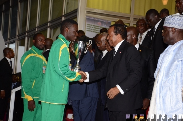 Le Président de la République S.E.M. Paul Biya a présidé ce dimanche, 23 novembre 2014, au Stade Omnisports de Yaoundé, la finale de la Coupe du Cameroun de football marquant la fin de la saison sportive 2014. La rencontre a vu la victoire de Coton Sport de Garoua qui remporte cette compétition pour la sixième fois, au dépens de la Panthère sportive du Ndé, sur le score de deux buts à zéro.