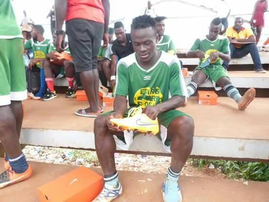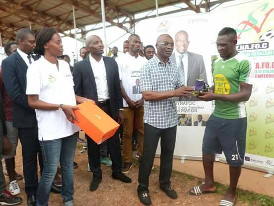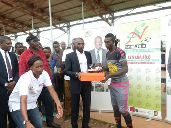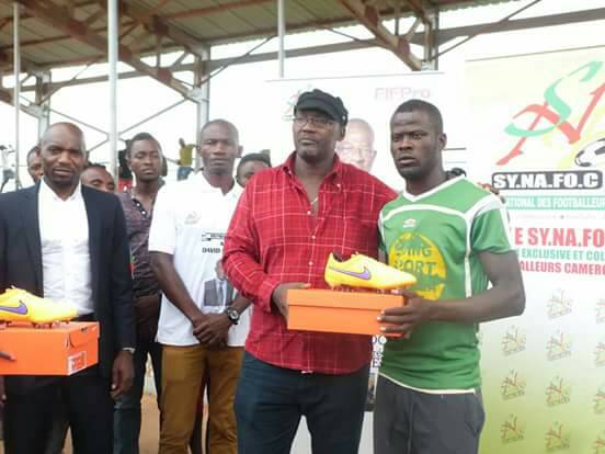 L’organisme a matérialisé la première phase de ses dons en équipements ce lundi en fournissant 25 paires de godasses aux joueurs de Eding Sport. Gérémi Njitap, Le président du Synafoc, a présidé la cérémonie flanqué de ses lieutenants immédiats, dont le vice-président benjamin Massing et le Président d’honneur, l’Ambassadeur Roger Albert Milla.