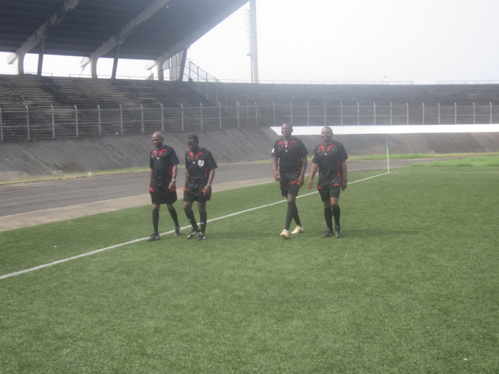 Ndé Christopher, ses assistants (Jani Bennedith, A1 et Guy Eballe Ze, A2) et Armand Ibea, le quatrième arbitre quittaient leur loge à 15 heures pour se rendre sur la pelouse. Ils procédaient ensuite, comme d’habitude, à quelques vérifications d’usage. Pour eux, le match était bel et bien programmé et, il fallait le jouer. Une fois le contrôle de norme terminé, ils regagnaient de nouveaux leur vestiaire pour y ressortir à l’heure prévu du match (15h30), cette fois avec le commissaire de la rencontre, Lyongha Davidson et le coordonnateur général, Doumbe Lea François.