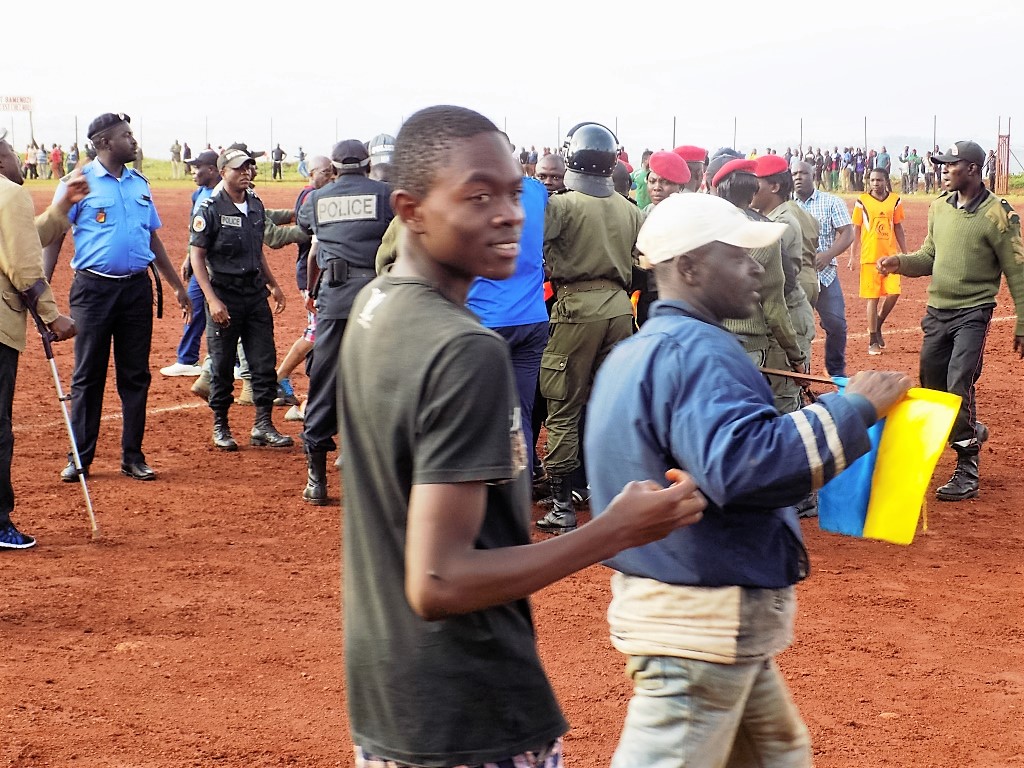 Heureusement, les forces du maintien de l’ordre veillaient au grain. Ils vont d’abord constituer un cordon de sécurité pour éviter que les coups qui fusaient de partout n’achèvent leur course sur la tête des hommes noir ; puis ils réussiront à calmer les esprits surchauffés. Ce qui permettra de disputer les dernières minutes de la rencontre. Alors que l’on croyait que le vent de la colère était passé, c’est plutôt un turbillon de colère qui était en gestation. Et au coup de sifflet final, d’un coup de pied rageur, l’un des supporters mécontents détruira le portail donnant accès à la main courante. En un laps de seconde, l’aire de jeu est noire de supporters en colère. Ils vont une fois de plus se heurter au cordon de sécurité érigé par les forces de l’ordre qui, parviendront à extirper du stade les arbitres de la rencontre. C’est dans un pick-up du groupement mobile d’intervention (Gmi) qu’ils ont quitté le stade de Bamendzi. Plus de peur que de mal, sains et saufs.
