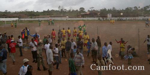 La deuxième manche va démarre comme s’est achevée la première avec la domination de Coton Sport. Les remplacements effectués par Thiam Mouafo l’entraîneur de Lion Ngoma ne donnera pas grand-chose, puisque la domination des visiteurs est perceptible. A la 70’ contre toute attente, une tornade particulièrement violente secoue le ciel de Nko’ovos. C’est la débandade totale au stade municipal d’Ebolowa puisque le vent qui s’en suit soulève la poussière qui couvre le stade et ne facilite pas la visibilité. Joueurs, supporters, officiels, viennent s’agglutiner à la tribune.