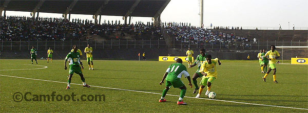D’abord la première mi-temps. C’est Union qui emballe la rencontre et s’offre les meilleures occasions. Trois occasions nettes de but ne sont pas converties. Un centre en retrait de Bellé Henri sur le flanc gauche chute sur Mouangue qui aurait pu ouvrir le score en frappant en pivot. Mais l’attaquant des nassaras choisit d’amortir le ballon. Un léger retard fatal puisque le gardien Tchoumteu Tekeu écarte le danger. Une action identique intervient à la 30’. Mais Mfopou Issa, nez à nez, devant le gardien et met le cuir à côté du file. Six minutes plus tard, Mouangue et Mfopou se retrouvent à deux les buts déserts, mais réussissent l’exploit de mettre le ballon dans le décor.