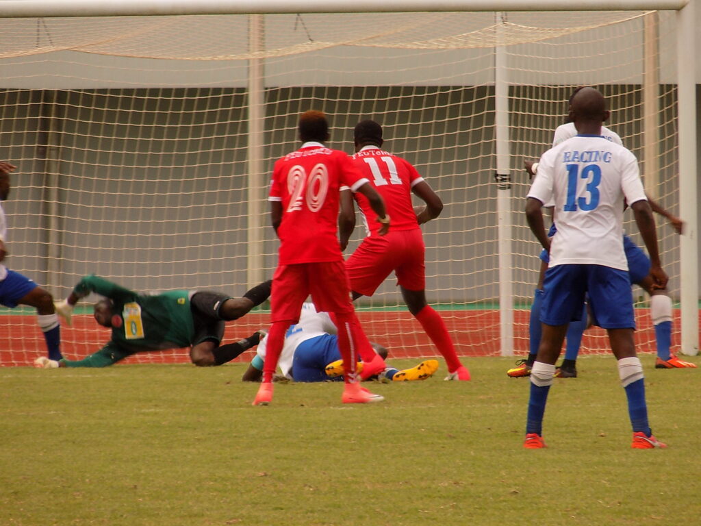 Après une belle accélération sur le côté gauche, Mengue fait un centre qui atterrit dans la surface de réparation de Feutcheu FC. Un rebond trompe Sadjo, le dernier rempart du club du Koung-khi, mais le pied de Peguy Ekoatsio est trop court pour dévier la balle au fond (7ème). La domination de Racing est capitalisée par Eric Pafong. Lancé en profondeur, le jeune attaquant, du plat du pied, bat Eric Sadjo (0 – 1, 16ème). Son coéquipier Anselme Bigna permettra au club de la Mifi de creuser l’écart. Servi par Peguy Ekoatsio, il déclenche une volée instantanée qui fait trembler pour la seconde fois les filets de Sadjo (0 – 2, 24ème). Ce nouveau but révolte les joueurs de Feutcheu FC et particulièrement Franklin Tchebemou. L’attaquant des rouge et blanc de Bandjoun dans un one man show, permet à son équipe de remonter la pente et de prendre l’avantage. Il s’illustre d’abord en concluant un penalty accordé à la suite d’une faute de main de d’André Ekwem dans leur surface de réparation (1 – 2, 32ème). Quelques minutes plus tard, le même joueur inscrivait son second but de la partie en profitant d’une erreur de marquage de la défense de Racing sur une balle de corner jouée à la rémoise (2 – 2, 38ème). Dans les ultimes instants de la première manche, Franklin Tchebemou concluait sa belle journée par un troisième sur un centre d’Ayissi Nga (3 – 2, 45ème). Au cours de la seconde période, Déric Kameni boucle le festival offensif de Feutcheu FC, reprenant une passe d’Alex Nsa’a (4 – 2, 73ème). Après ce but, le club de Djiko va ériger un mur qui restera infranchissable par les attaquants adverses jusqu’au coup de sifflet final.