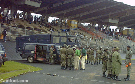 Tout commence par l’arrivée au stade de l’équipe visiteuse à savoir Racing de Bafoussam qui a préféré le passage par la porte de la tribune au tunnel réservé aux équipes et officiels comme à l’accoutumée. Les forces du maintien de l’ordre en service sous le commandement de l’officier ESSENGUE Patrick ayant pris position au portillon de la tribune pour éviter le passage des joueurs de Racing de Bafoussam avaient reçu des instructions venant du directeur du stade Mr Mandjeck Grébert demandant aux joueurs d’utiliser l’entrée officielle réservée à cet effet.