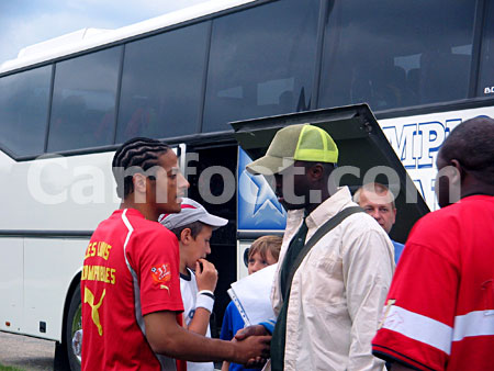 St Pierre-en-Perray, 29 Mai 2005. Dans le cadre de la préparation du match Benin-Cameroun prévu le 4 Juin à Cotonou, les Lions Indomptables du Cameroun sont entrés en stage bloqué ce jour en region parisienne. Premières images et ambiance de ce début de stage.