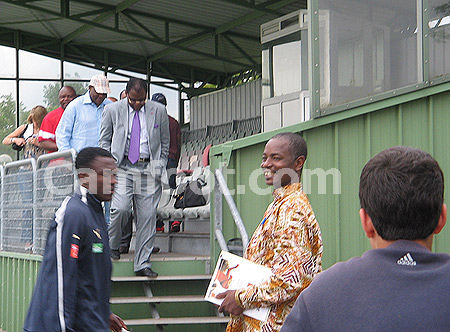 Philippe Mbarga Mboa (chemise rose) lors de l'escale de ce jeudi à Yaoundé