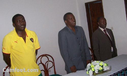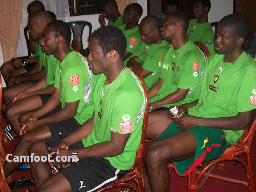 Le ministre des sports Augustin Edjoa a rendu visite aux joueurs immédiatement après l’entraînement de cet après midi. Le patron des sports est venu galvaniser les troupes ‘’ Bien que nous soyons déjà qualifiés, ce match est très important, il est question de finir ces éliminatoires des jeux olympiques en beauté devant notre public c’est-à-dire en battant cette équipe avec la manière’’. Le ministre des sports a également entretenu les joueurs sur les primes en cas de victoire demain, il est question de payer les primes pour la victoire mais surtout une prime d’encouragement pour la qualification. Les joueurs séance tenante ont fait du ministre Augustin Edjoa le président d’honneur des Lions espoirs. La fédération Camerounaise de football était représentée lors de cette séance de bénédiction dans la tanière par Etienne Claude Tamo, vice-président de la commission de la sécurité à la Fecafoot et membre du comité exécutif de la dite institution. L’administrateur de la Fecafoot a encouragé les joueurs au nom du président Iya Mohammed et a promit de tout mettre en œuvre pour faciliter la préparation de cette équipe olympique en vue de sa participation aux jeux olympiques Beijing 2008.