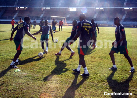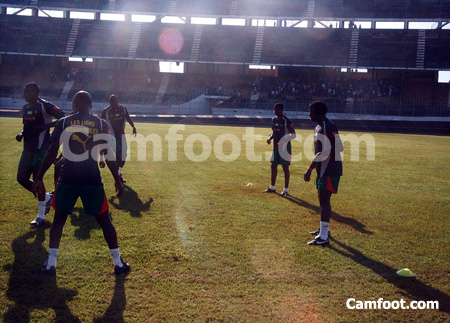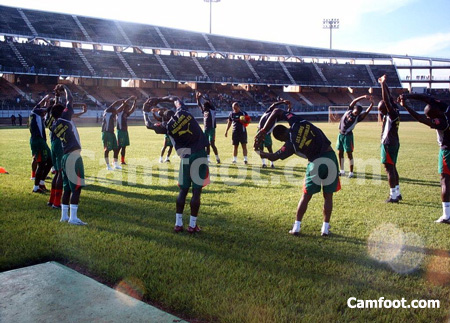 C’est à 10h (heure locale) que les 15 Lions présélectionnés ont foulé le terrain du Golf Club de Yaoundé pour l’ultime séance de décrassage. Celle-çi marquait le début effectif du stage préparatoire au match Cameroun-Egypte comptant pour la 10e journée des éliminatoires de qualification au mondial allemand de 2006.