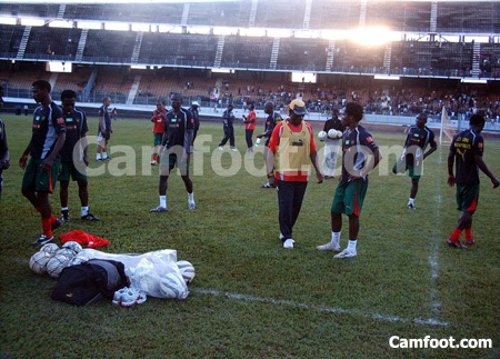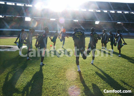 Suite à la séance de décrassage matinale, malgré le huis clos non respecté par de nombreux fans et sympathisants, la sélection nationale a effectué sa première séance d’entraînement sur la pelouse verdoyante du stade Omnisports de Yaoundé.
