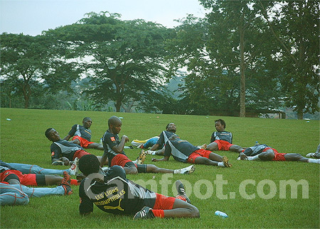 Les Lions à l’entraînement sur le terrain du complexe de la BEAC à Yaoundé