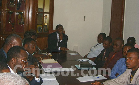 La réunion d’évaluation de la rencontre de la sixième journée des éliminatoires couplées Can-Coupe du monde 2006 entre les lions indomptables du Cameroun et les Faucons du Soudan, s’est déroulée ce mardi au ministère des sports et de l’Éducation physique. Ont pris part à ce rendez-vous d’analyse, Le ministre Philipe Mbarga Mboa et ses collaborateurs, la fédération camerounaise de football, la direction du stade omnisports de Yaoundé, l’encadrement administratif, l’encadrement médical, les entraîneurs et les journalistes.