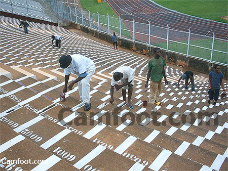 Un tour au stade omnisports Ahmadou Ahidjo permet de constater que les travaux qui y ont cours depuis 20 jours après le passage de la mission Fifa-Caf se poursuivent. La construction de deux vestiaires, la numérotation des places et la réfection des toilettes dans les gradins constituent l’essentiel des travaux.