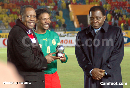 Bref et inédit cérémonial qui s’est déroulé sous les yeux du ministre camerounais des Sports et de l’éducation physique, Philippe Mbarga Mboa. Rigobert Song Bahanag a soulevé son trophée sous les ovations des supporteurs camerounais présents dans les gradins du stade de l’Académie militaire du Caire. Contre le Togo, le capitaine des Lions indomptables, âgé de 30 ans atteint également ses 100 sélections en équipe nationale du Cameroun, qu’il a été intégré en 1994, lors de la World cup aux USA.