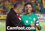 Le joueur de Galatasaray en Turquie a reçu un trophée des mains du président de la confédération africaine de football (CAF), Issa Hayatou. Une belle récompensée qui lui a été décernée lors de la mi-temps du match victorieux des Lions indomptables, mercredi dernier, devant les Eperviers du Togo.