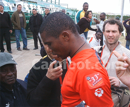 Samuel Eto’o Fils n’a pas la tête de ses jambes. L’humilité est un mot qu’il ne semble pas connaître. Tout au long de son séjour au Caire, et malgré les « assurances » données en ce sens par Philippe Mbarga Mboa, Eto’o (SEF) cherchait par tous les moyens à se distinguer de ses coéquipiers. « Quand Samuel Eto’o est dans un groupe, je veux qu’on sache qu’il est là », assène-t-il dans l’hebdomadaire France Football du 17 janvier 2006, parlant de lui-même à la troisième personne, comme le font souvent ceux qui ont perdu pied avec la réalité. Les joueurs se partagent une chambre à deux ? SEF fait chambre à part. L’entraîneur désigne Njitap pour diriger les étirements d’après match ? SEF fait sa séance personnelle, au milieu des autres. Les femmes ne sont pas acceptées à l’hôtel des joueurs ? SEF fait venir quelques- unes (…) et elles se succèderont à un rythme vertigineux aux pieds des pyramides. Après la défaite, tous les joueurs et le staff technique sont rassemblés à l’hôtel pour une réunion avec les officiels ? SEF, d’abord retenu au contrôle anti-dopage, les rejoint à la fin sans se presser, le sourire aux lèvres, comme si tout était pour le mieux dans le meilleur des mondes…