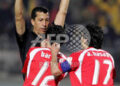 – 1* C’est parti! Après l’arrivée du Président Moubarak et l’exécution des hymnes, l’Egypte a donné le coup d’envoi. L’arbitre tunisien Mr Daami indique tout de suite sa présence en donnant un carton à Akalé, dès la deuxième minute.