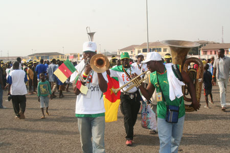Parmi les milliers de supporters des Lions à Kumasi, ils sont les plus nombreux. Que soit au Georgia Hotel, la tanière des Lions indomptables, au Ceeta-Hotel, stadium ou chez Mme Bouss, refuge des camerounais en face du Baba Yarra Sports Stadium de Kumasi, au Wesley College, le lieu d’entraînement de Rigobert Song et ses co-équipiers, les camerounais et même les ghanéens, habillés aux couleurs d’Orange ne passent pas inaperçus avec leurs T-shirt estampillés « Fan des Lions » ou « Lions for life », (supporters des Lions pour toujours).