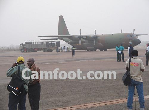 Un avion militaire transportant une délégation venant du Cameroun et des denrées alimentaires a attéri à l’aéroport de Tamale ce samedi en début de soirée. La délégation forte de huit personnes donc 3 cuisiniers professionnels a pour mission de s’assurer de combler les besoins alimentaires des Lions Indomptables. On se rappelle que les joueurs et le reste de la délégation se sont récemment plaint de la qualité culinaire qui leur était servie.