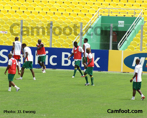 Ainsi bien installés à leur hôtel, les Lions ont eu une séance d’aérobie dans un stade au centre ville d’Accra. Le ministre des sports est ensuite venu à l’hôtel s’assurer que l’équipe est installée dans les meilleures conditions. Et surtout délivrer aux joueurs le message d’encouragement du chef de l’état reçu de Yaoundé. Ce matin également le ministre des sports Augustin Edjoa était l’hôte des joueurs. Il est venu prendre le petit déjeuner avec les lions avant l’unique séance d’entraînement de la journée. Une séance d’entraînement qui s’est déroulée une fois de plus devant le ministre des sports et de l’éducation physique et l’ambassadeur Roger Milla.