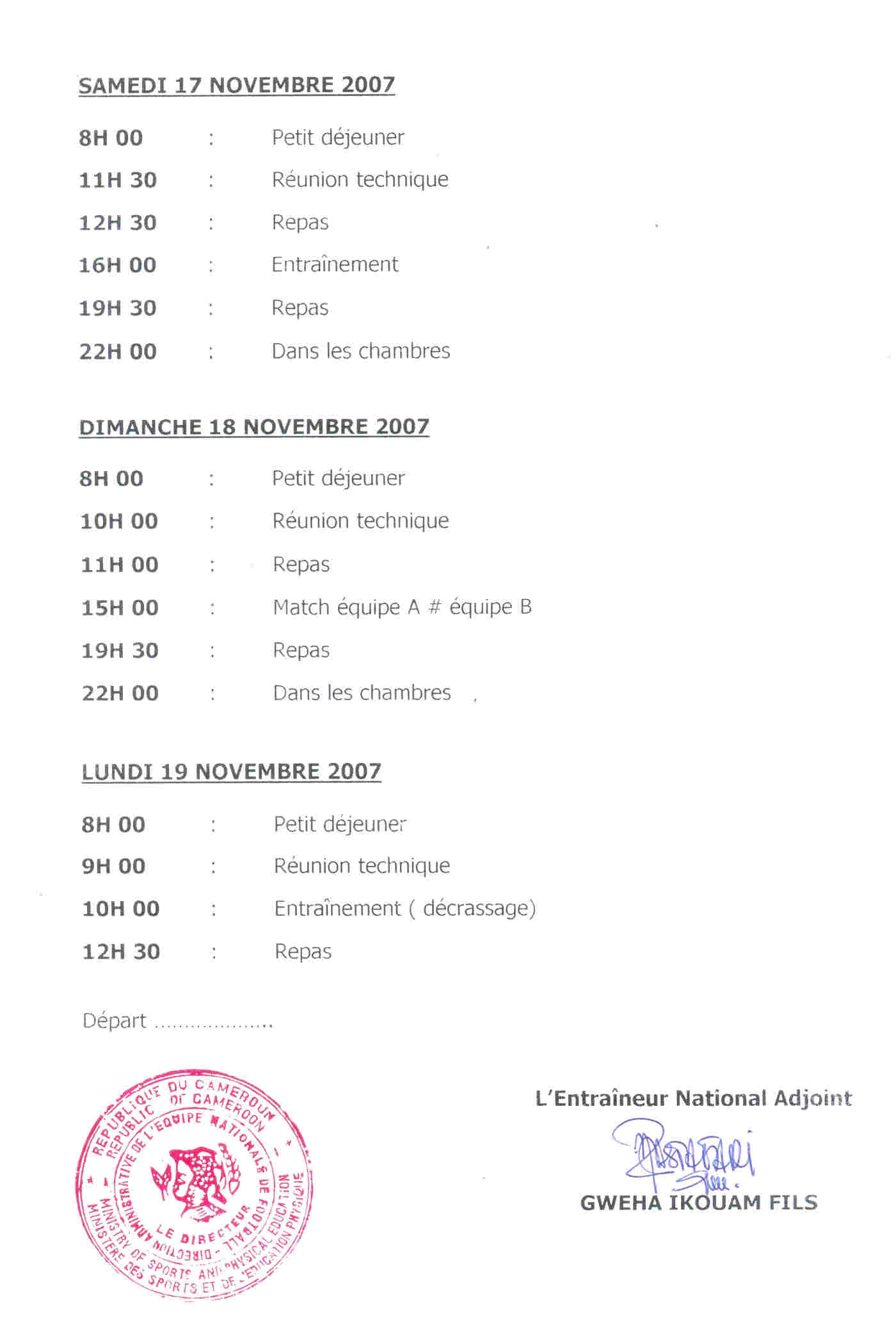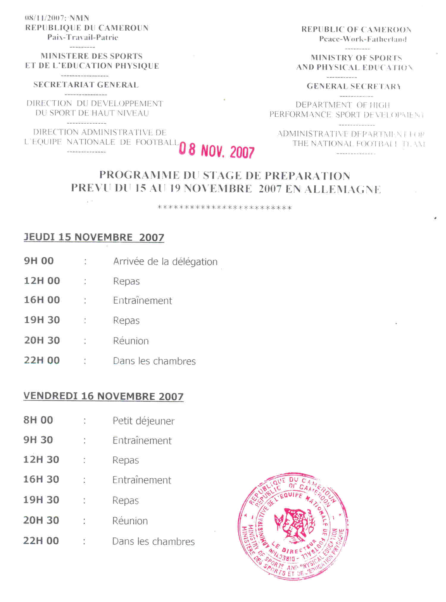 Encore sous contrat avec son club Soudanais qui ne le libérera qu’après son dernier match du 24 Novembre, Otto Pfister prendra part au prochain regroupement des lions indomptables qui se déroulera du 15 au 19 de moi dans la ville Herzogenaurach (Bavière). Une participation partielle puisque le nouveau sélectionneur arrivera dans la journée du 18 via Nuremberg. Les trois premières journées du rassemblement se feront avec Gweha Ikouam Fils et Thomas Nkono qui lui rejoindra la Bavière dès Mercredi soir.