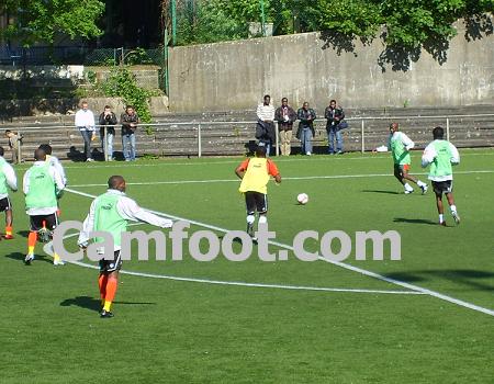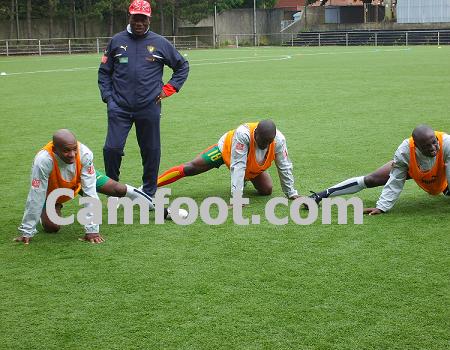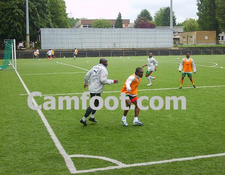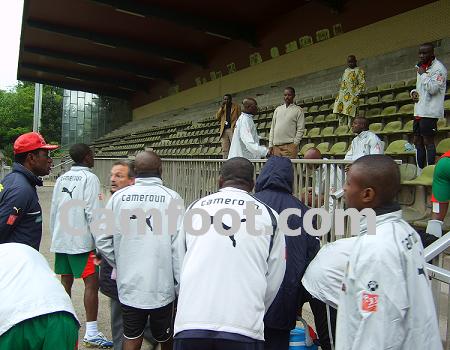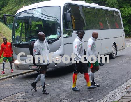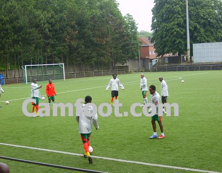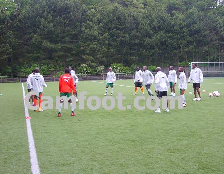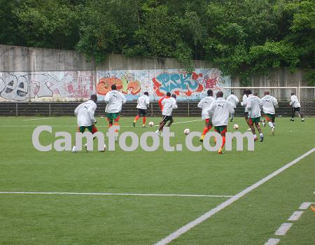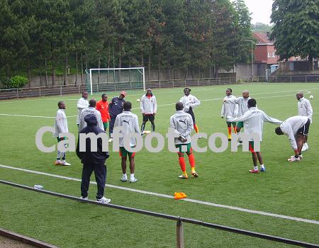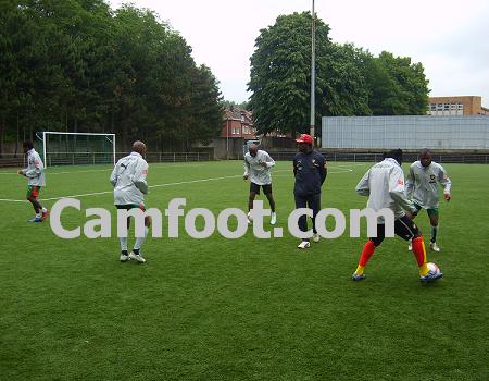 La mine grise sur les visages, on pouvait parfaitement comprendre l’humeur des poulains de Jules Frédéric Nyongha en cette matinée du 29 Mai 2007. Pour un match se disputant en Afrique, les 10°C affichés sur les thermomètres n’étaient forcement un élément de motivations. Qu’à cela ne tienne, les entraînements pouvaient timidement commencer sur la pelouse synthétique du stade Yernaux de Montigny. Bill Tchato arrivé aux environs de 8H30 était également de la partie. Sans Matoukou et Stéphane Mbia retenus à l’infirmerie, Idrissou, Ngom Kome, Angbwa, Mbami, Ateba, Feutchine, Tchato, Douala, Bikey, Deumi, Makoun, Nguemo et Webo se sont mis à la disposition de Thomas Nkono et de Jules Nyongha pour un programme très intense marqué par des exercices physiques et tactiques.