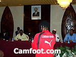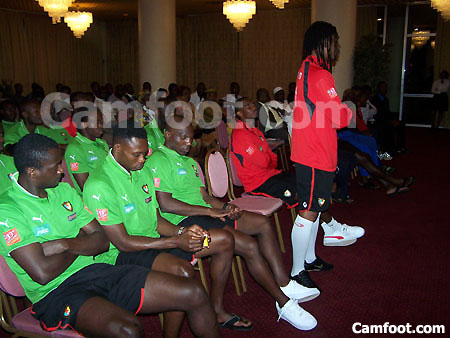 Des 20h45, la réunion commençait par le compte rendu de Martin Ntchankou, directeur des Sports de Haut niveau, au sujet du stage ayant débuté lundi soir. Jules Nyongha prenait ensuite la parole, le temps de dire rapidement que « l’équipe va bien, à part un problème de santé de l’un des joueurs ». Le joueur en question était designe par le professeur Atchou : Jean II Makoun, victime d’un « claquage musculaire », et donc forfait pour la rencontre samedi.