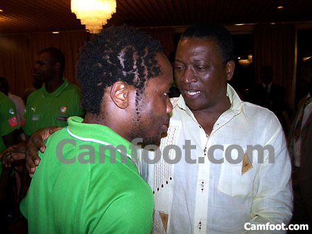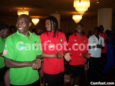 La soirée se terminait par une présentation pour le moins originale de tous les joueurs de l’équipe, qui se levaient tour à tour en allant saluer un coéquipier assis en criant son nom, au fur et a mesure. Idriss Ambane était le dernier du groupe à le faire, en saluant Armand Deumi assis trois rangées derrière…Le ministre des Sports profitait alors de l’occasion pour l’encourager et aussi demander aux autres Lions de bien l’encadrer. Mr Edjoa, avant d’entonner l’hymne national demandait aussi au groupe de se rendre dimanche matin au stade annexe n°3 à 9h, pour le lancement officiel au pays de la Danone Cup, réservée aux benjamins.