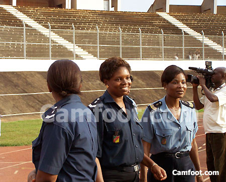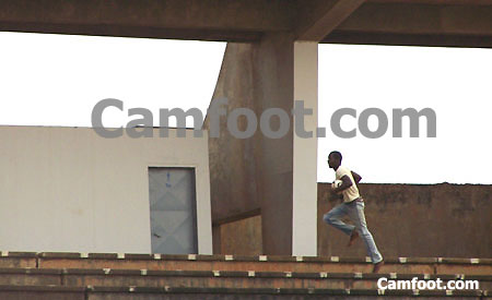 Les sélectionnés continuaient avec un travail intensif devant les buts. Des centres, des reprises de volée sans oublier diverses combinaisons dans les 25 mètres se terminant par des frappes. Les gardiens Souleymanou et Kameni se distinguaient tour à tour, même si les attaquants réussissaient à les tromper parfois en force, mais aussi en finesse. L’une des frappes de Geremi se retrouvait dans le virage derrière le but. Le ballon tardant à revenir, un groupe de policiers s’avançait vers le petit groupe de jeunes spectateurs assis là.