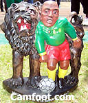 Kameni, après de très intenses exercices physiques avec Mbia sur le bord de la touche déclarait devant les nombreux micros tendus être « content d’être là« . Le gardien de l’Espanyol de Barcelone ajoutait que ses coéquipiers et lui allaient faire de leur « possible pour remporter le match de samedi, pour l’exigeant public camerounais« . A la question de savoir pourquoi on le voyait moins avec son club de Chelsea, Geremi répondait qu’il sortait d’une blessure, et qu’il était « revenu en forme« . Njitap pouvait ensuite admirer son cadeau venu de Bafoussam. Un supporter venu de cette ville de l’Ouest Cameroun lui présentait une sculpture en bois peint: le numéro 8 des Lions adossé à un lion rugissant.