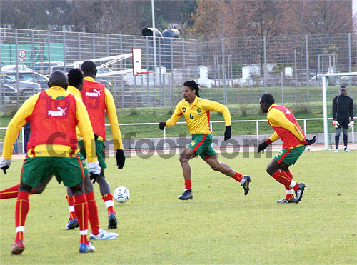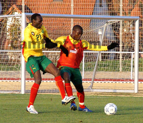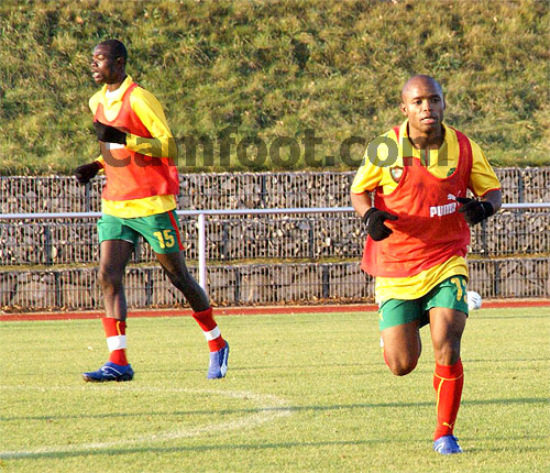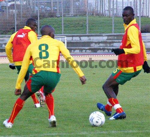 Parmi ces joueurs, on retrouve Achille Emana et Modeste Mbami. Deux joueurs dont les performances en club sont appréciées dans leur championnat. Leur degré de motivation et leur apport technique ont été remarquable. Geremi Njitap n’a pu que constaté leur dégât. Touché au vif et en joueur d’expérience, c’est Geremi qui va délivrer sur des balles arrêtées les passes décisives des buts de Job et de Bikey. Samuel Eto’o Fils n’a pas manqué d’encourager Emana. Que ce soit pendant les entrainements ou encore à l’hotel, ils n’ont cessé de dialoguer. Idem pour Modeste Mbami qui nous a confié vouloir se concentrer uniquement sur le football. S’il reconnaît en toute modestie avoir passé une période difficile, le Marseillais assure être de retour pour jouer les premiers rôles dans l’axe de jeu des lions indomptables du Cameroun. Contrairement à l’équipe de Jules Nyonga, les énergies semblent se libérer pour le bien être du groupe. Certains joueurs étaient resigné à l’effet que malgré leur forme du moment, la messe semblait à chaque fois être dite. Peut-être est ce aussi la raison de la grosse débauche d’énergie et le jeu entreprenant et vif de Joseph Désiré Job ou encore de Joël Epalle, tous les deux très à l’aise sur le terrain. Avec les arrivées de Bertin Tomou et Guy Madjo dans le dispositif offensif, la concurrence est plus que jamais installée. Le premier qui est en tête des buteurs en Belgique a fait également une bonne impression pendant tout le stage. Le deuxième dans un style purement Anglais symbolise la robustesse et la rapidité sans oublier son apport dans le travail défensif. Sur le côté gauche, Mohamadou Idrissou a assuré l’essentiel. La surprise de ce rassemblement est venue de l’attaquant des Astres de Douala, Bassombeng, qui, dans un jeu provocateur a mis plusieurs fois à l’épreuve un Timothée Atouba très moyen dans le travail défensif. Positionné en stoppeur comme dans certains matchs de la CAN 2002, Bill Tchato a fait parler son expérience en dirigeant une défense composée pour l’essentiel de joueurs amateurs.