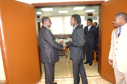 Their reception, which Rogobert Song described as highly appreciated, was crowned by a group photo at the entrance of the star with the Prime Minister, his closest collaborators in the persons of the Secretary General, his Chief of Cabinet and the Deputy Secretary General, the Minister of Sports and Physical Education, Head Coach Otto Pfister, the 23 players and the technical experts.